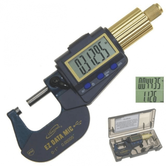 Clear, Extra Large LCD display, accurate to 0.00016”. Hardened and ground spindle with carbide anvil ensure durability and accuracy. Comes in a protective case with Ball Attachment, battery door opener, instructions, and extra battery.